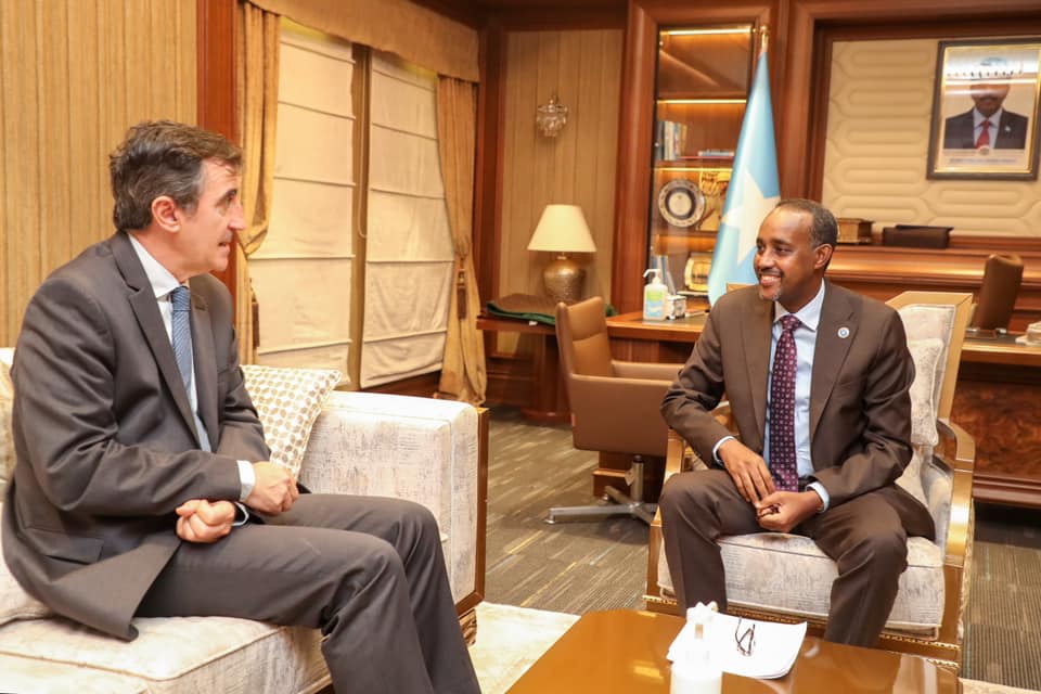 Ra’iisal Wasaare Rooble ayaa xafiiskiisa ku qaabilay Danjiraha Midowga Yurub ee Soomaaliya Nicolas Berlanga iyo Ergayga gaarka ah ee Norway Heidi Elburgi Johansen, oo ay ka wada-hadleen arrimaha doorashooyinka dalka.